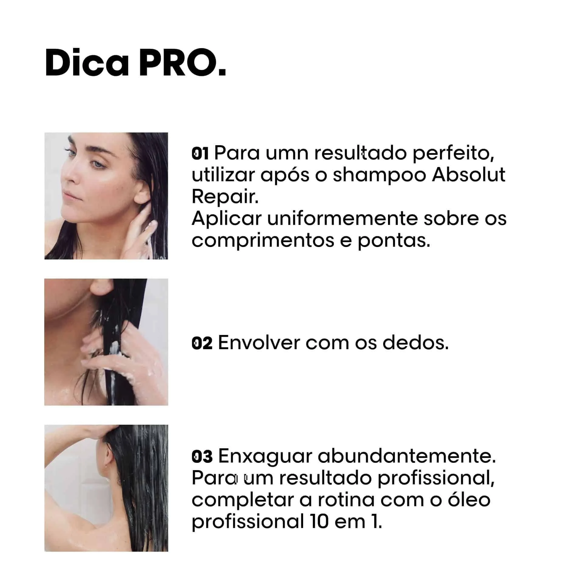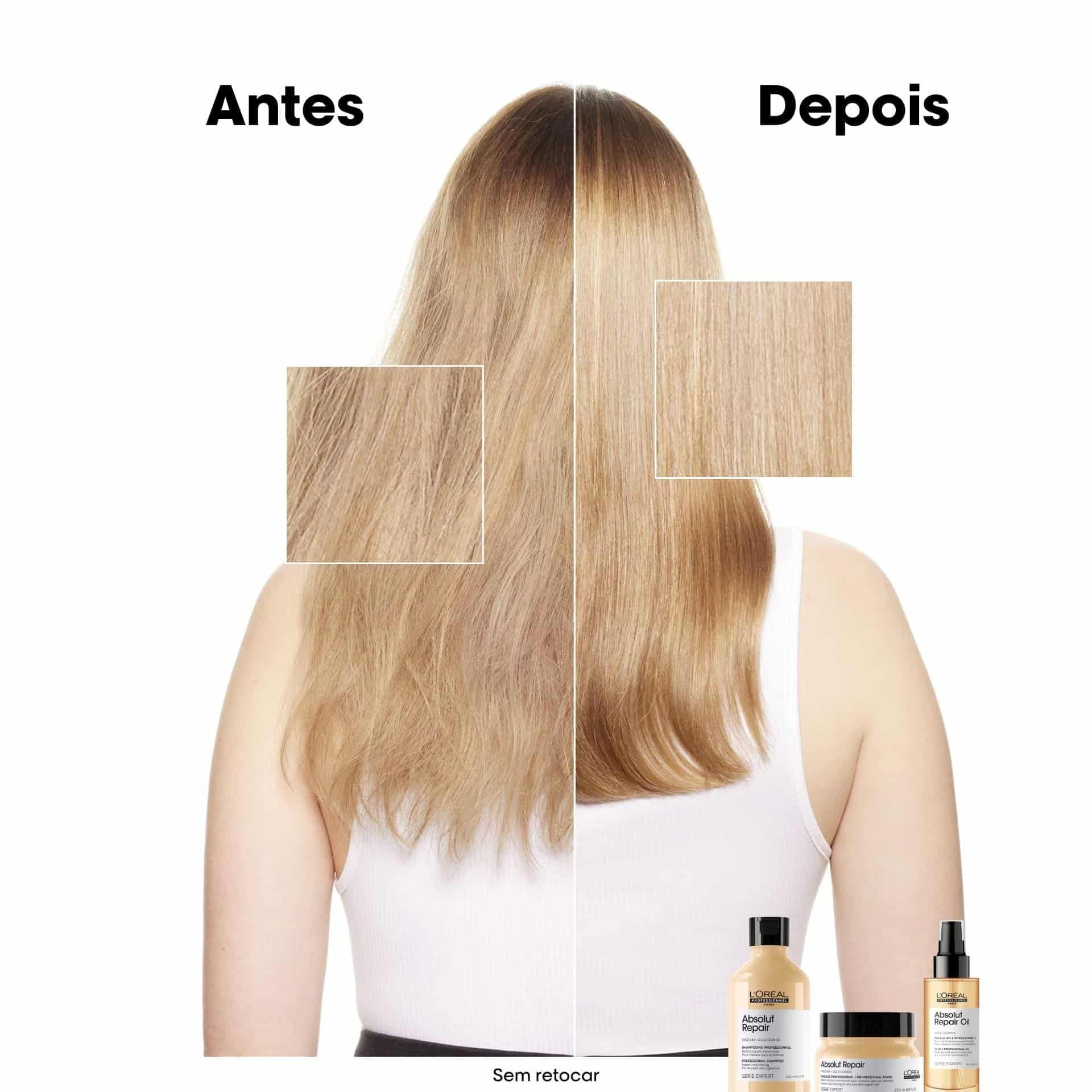 Após utilização do Shampoo Absolut Repair e Condicionador, o cabelo fica com mais brilho, suave, mais resistente e o cabelo fica menos danificado.