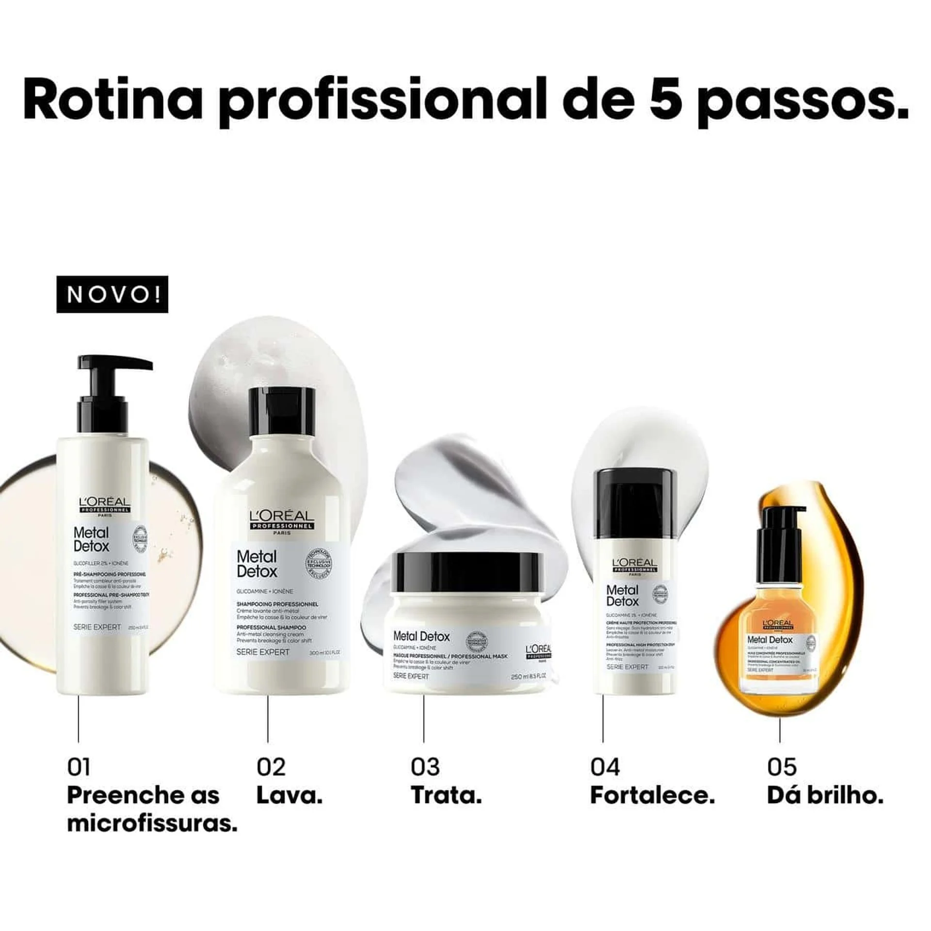 Neutraliza o metal dentro da fibra e protege-a antes de qualquer serviço de coloração, equilíbrio ou aclaração.